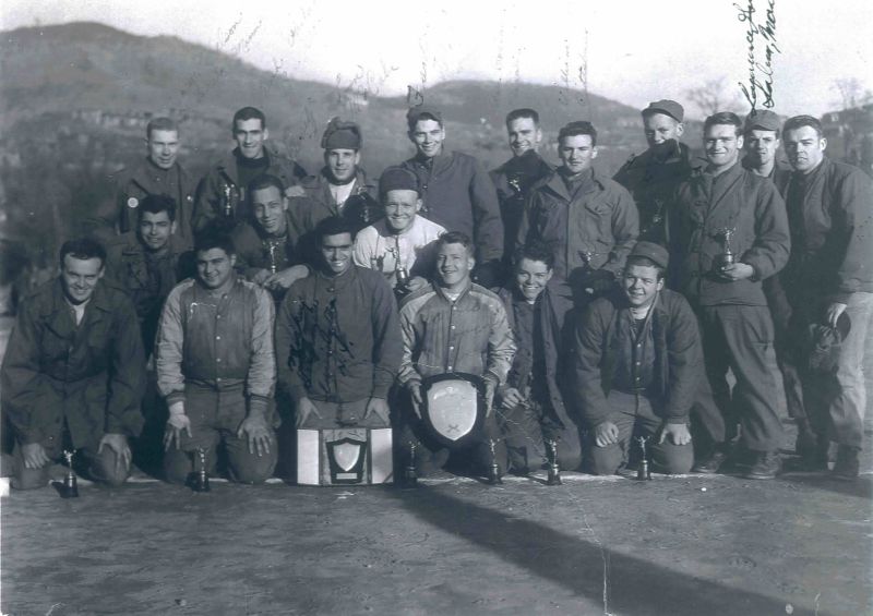 | 501st Seoul Football Champions 1952 Record 13-1 Submitted by: Frank Taft, Newton, MA L-R Top Row: George Wilson, Churck Lee Passer, Tom McCabe Gunner, Frank Taft, Ron Rosbach, ….. Goodman Center, Lawrence Gerard, John Leary. Middle Row: Mike Rotanye, Al Schwartz, Phil Henry, William Laste Goose, Joe Bush Coach Bottom Row: Tim Hansen End, Tony Caruso, Mickey DeNuncio, Harold Howe, William Polen, Dick Smith Notes on photo: Good Luck, William Sporcic, PA (501st News Hawk) The Boston Kid, Ernie Love, You mean the biscuit kid, Mel |